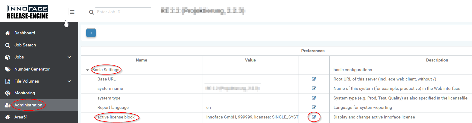 The ReleaseEngine license can be imported in the cockpit in the area Administration → Standard-Preferences → Basic Settings.