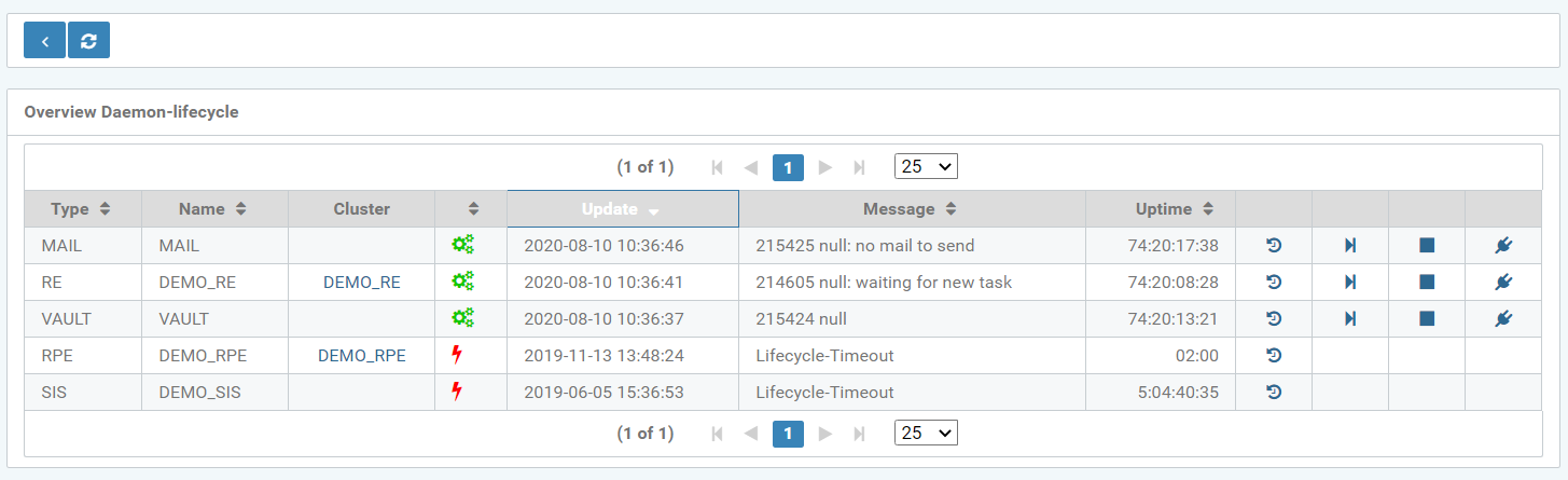 - Show history of daemon lifecycle ("Clock backwards" icon)