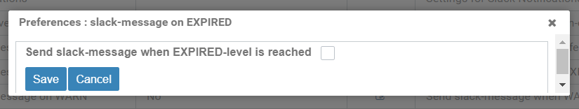 Figure: Editable system settings, Notifications, Slack message on EXPIRED