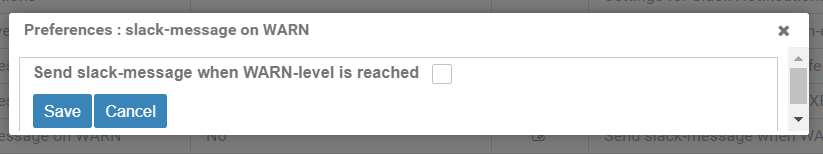 Figure: Editable system settings, Notifications, Slack message on WARN