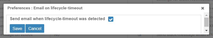 Figure: Editable system settings, Notifications, Mail on lifecycle-timeout