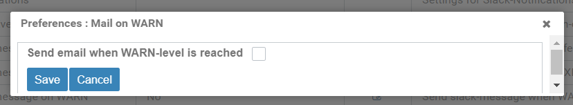 Figure: Editable system settings, Notifications, Mail on WARN