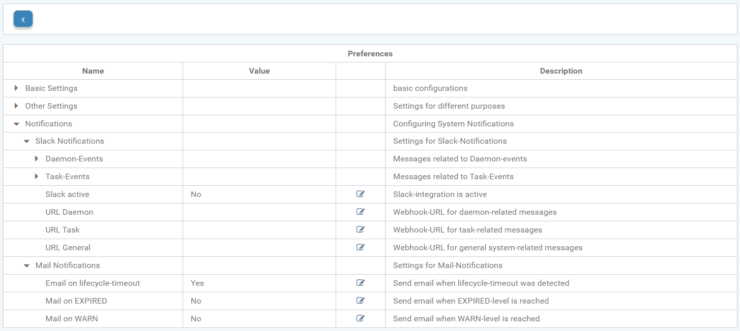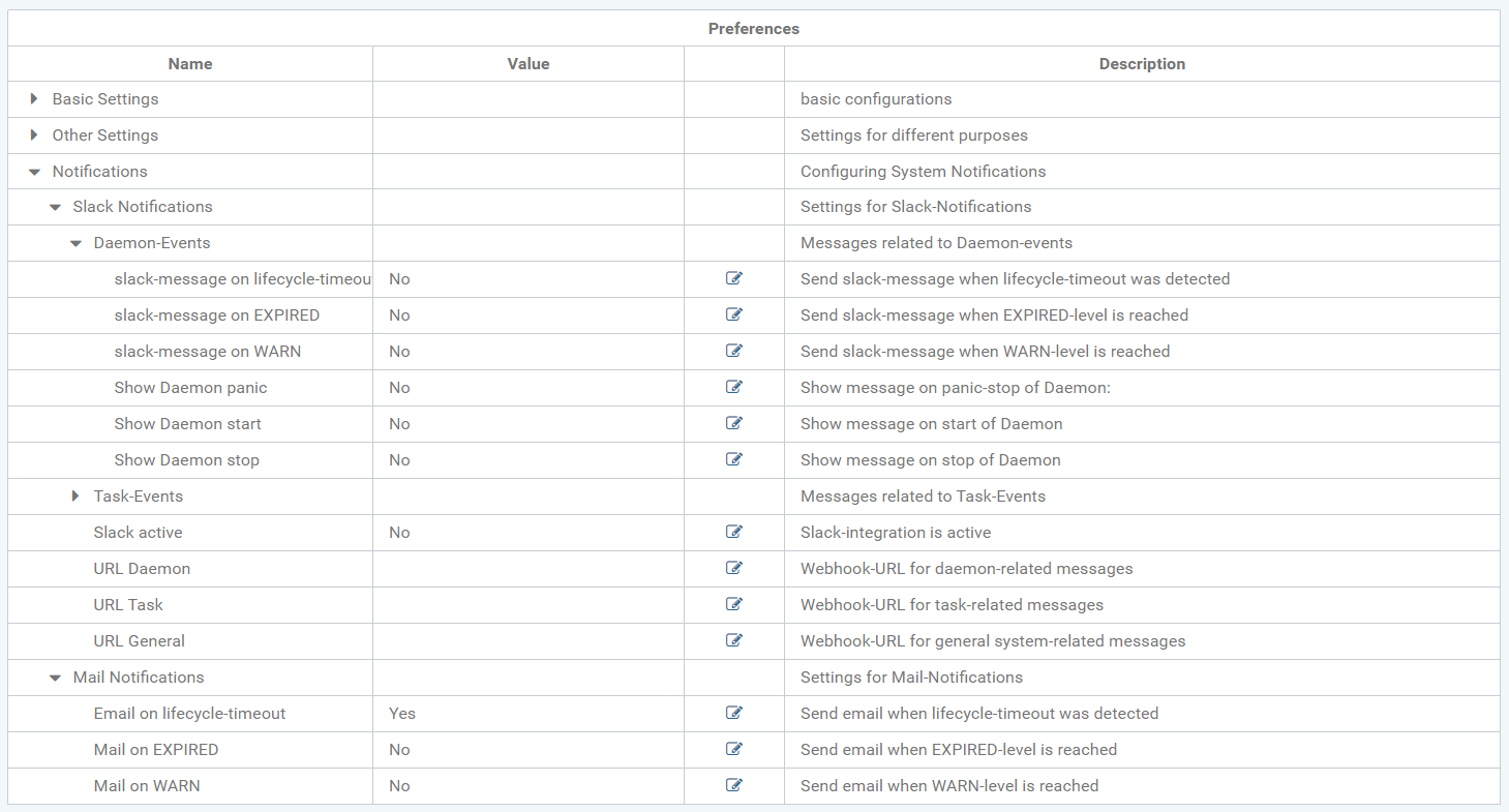 Here, system notifications can be configured via email or Slack. For example, you can set what should happen when a daemon's lifecycle is timed out and the daemon no longer processes jobs.