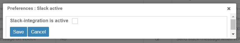 - Slack active: Slack integration is active if Yes is set here. Otherwise, all other settings for Slack will have no effect
