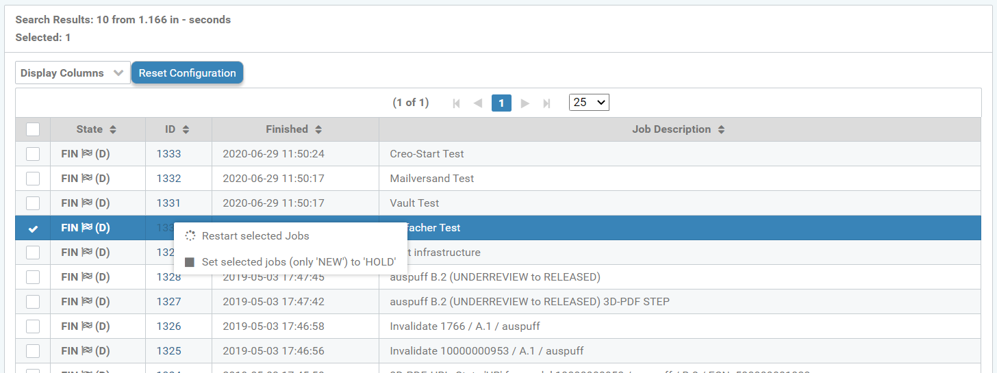You can click on jobs in a search query – with the appropriate authorization – using the right mouse button: