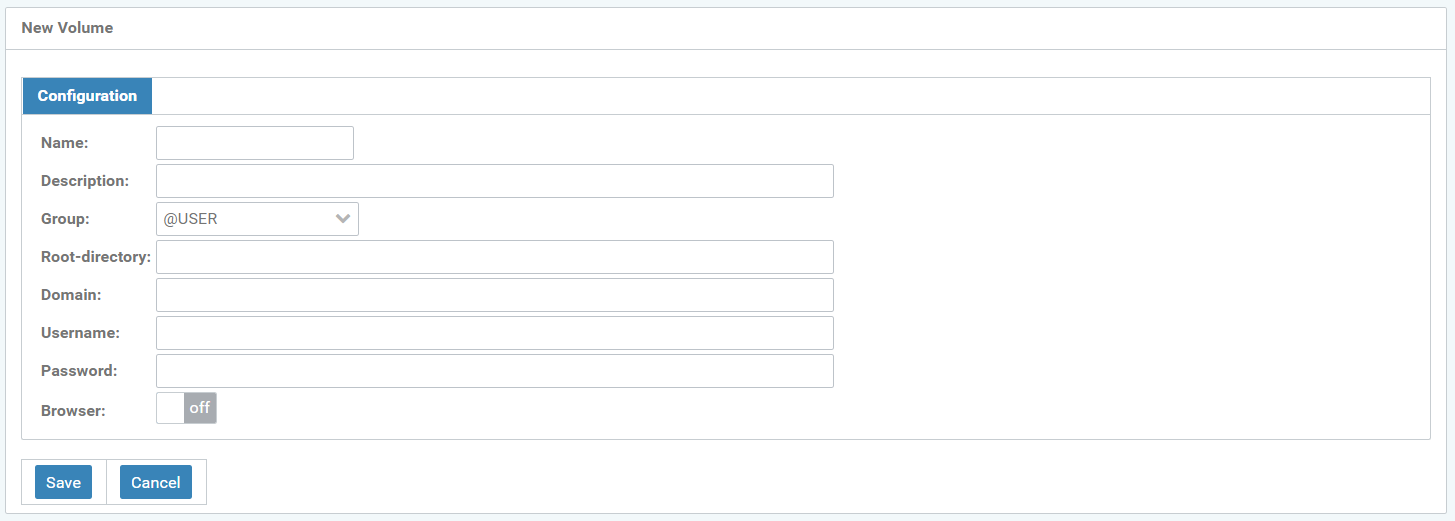 Configure a new volume with the following parameters: