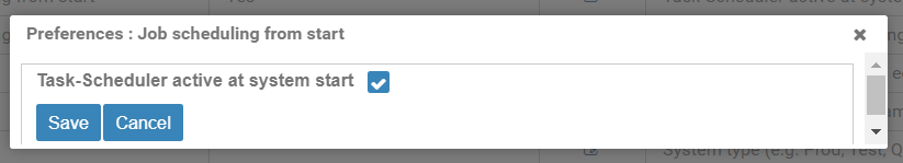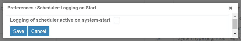 - Scheduler logging from Start: Logging of the scheduler is active at system start. The Scheduler can be deactivated here while in operation.