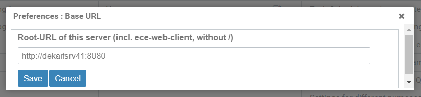 - Base URL: Base URL from this server (incl. ece web client, without /). Use this information, for example, to generate links to jobs in emails.