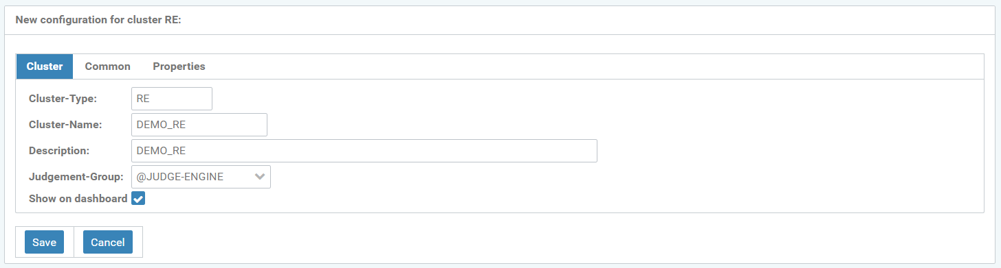 Figure: New configuration for cluster RE:DEMO_RE_COPY, “Cluster” tab