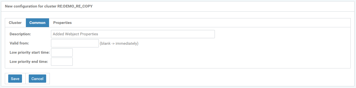 Figure: New configuration for cluster RE:DEMO_RE_COPY, “Properties” tab