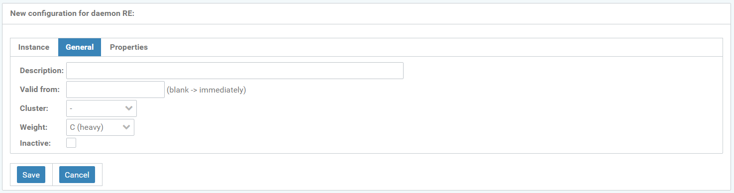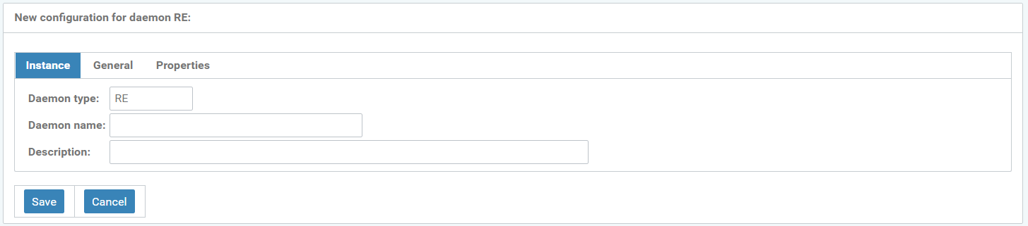 For example, the daemon instance RE was selected. Further configuration of the daemon is possible in the "Instance" tab, regarding: