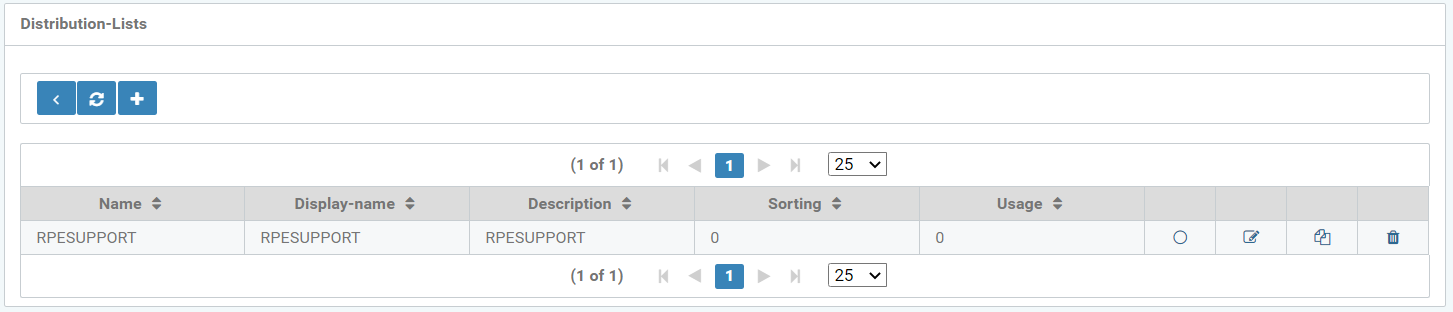 - Create new distribution list based on this distribution list (Duplicate icon)