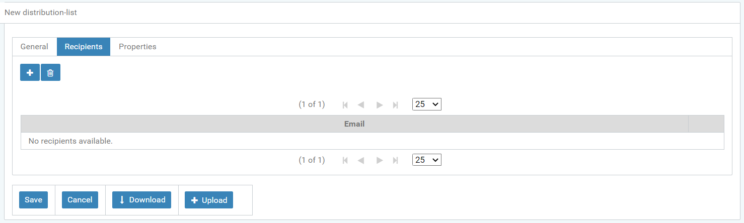 Use the "+" icon in this area to add and enter the recipients of the distribution list. The import function can also upload this recipient list.