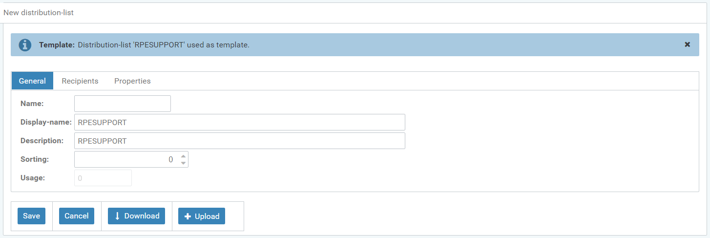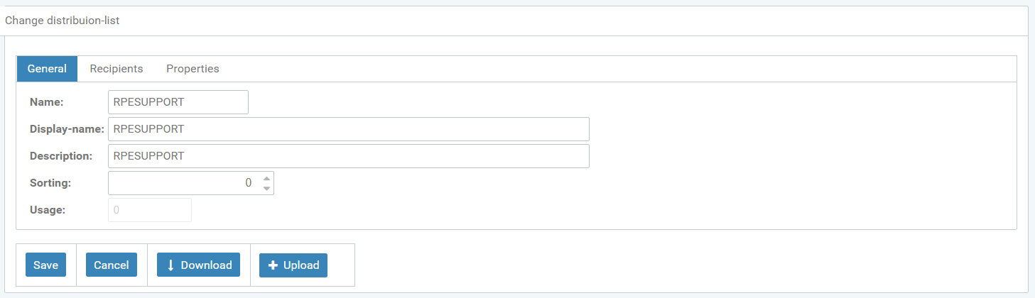 The properties of the new distribution list can be assigned a value and the names and descriptions can be modified.