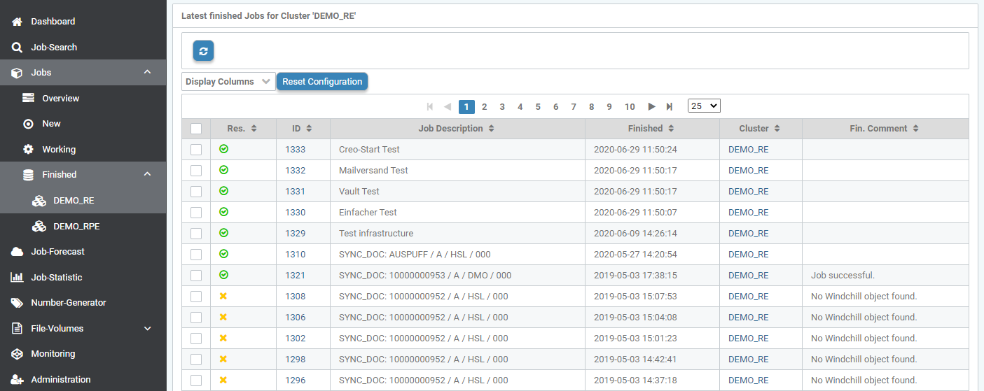 The processed jobs of the respective cluster display (completed jobs (FIN)).
