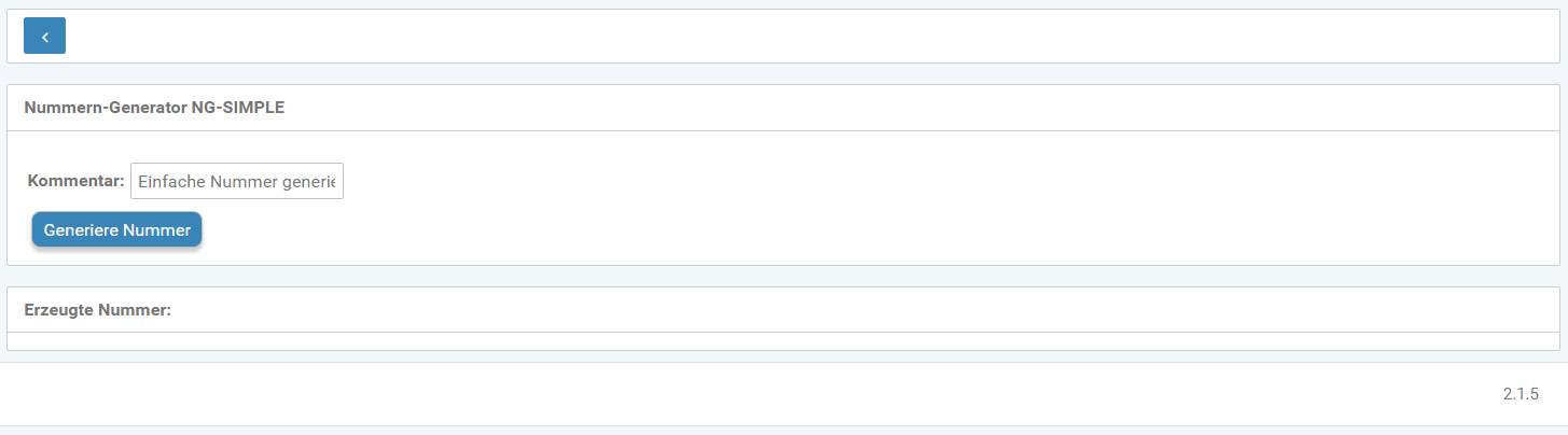 On the page where you can generate numbers, the name of the selected number generator will display at the top. A new number can be generated using the Generate number button. Depending on the configuration of the generator, a comment must be entered as the reason.