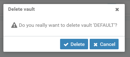 Before the vault is finally deleted, a pop-up window appears as a confirmation prompt asking if the Vault should really be deleted.