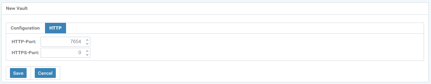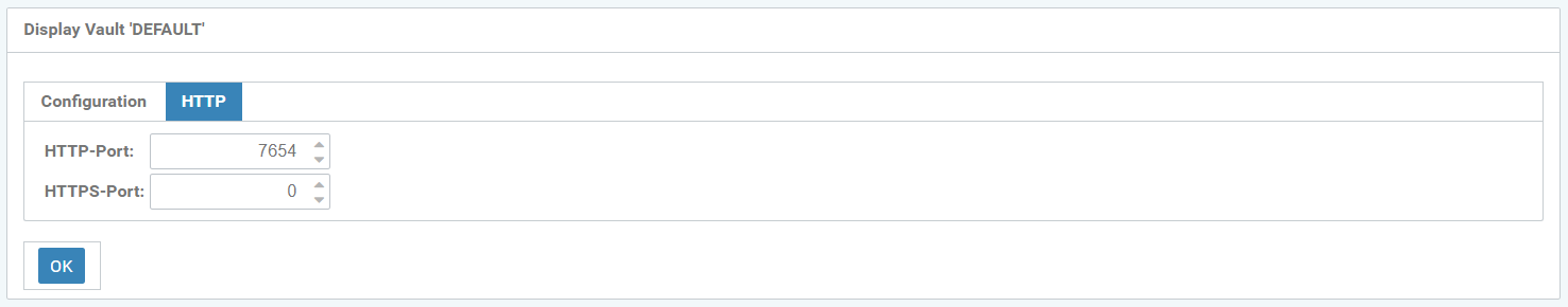 Furthermore, the HTTP port for the already created vault can be changed - see the following figure.